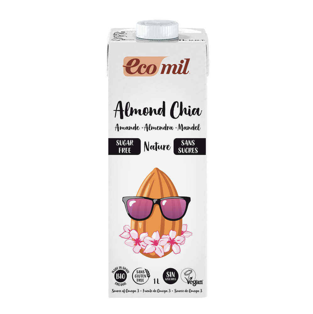 Ecomil almond drinks can be consumed at any time of the day, hot or cold, in coffee or tea and in sauces, cakes, pancakes or puddings. This drink can be qualified as "sugar-free" because it contains less than 0.5g of sugars per 100ml or 100g; and as "unsweetened" because none of the ingredients used is used because of its sweetening properties. (in accordance with EC regulation No. 1924/2006.). It does not contain gluten and lactose. Suitable for vegans.