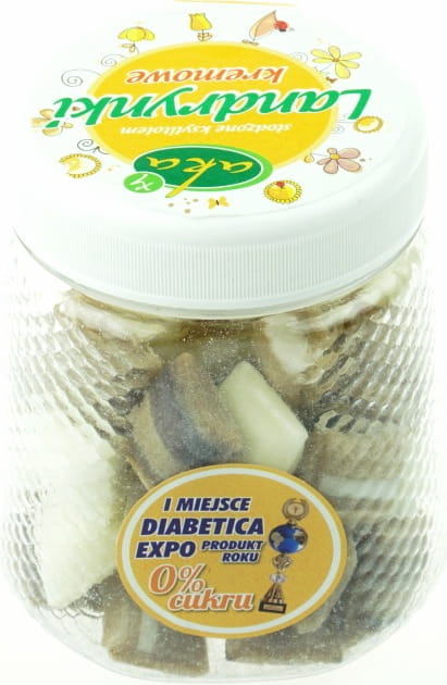 Xylitol (birch sugar), isomalt (complementary substance-mass), cocoa, caramel, natural aromas: vanilla, cocoa, coffee, cream, almond, anise.