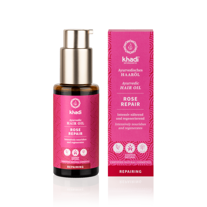 Do you have dry, damaged hair that breaks and splits? Meet intensively regenerating rose hair oil, created to restore good condition of your hair, nourish it, moisturize and strengthen it. Khadi Oil with Rose will not only make your hair look well-groomed, but also really bring it back to good condition. The oil will help rebuild the damage in the length of the strands and strengthen the hair, preventing further damage. Effectively protects hair ends against splitting and deeply regenerates them. In addition, it will also take care of proper scalp care.
