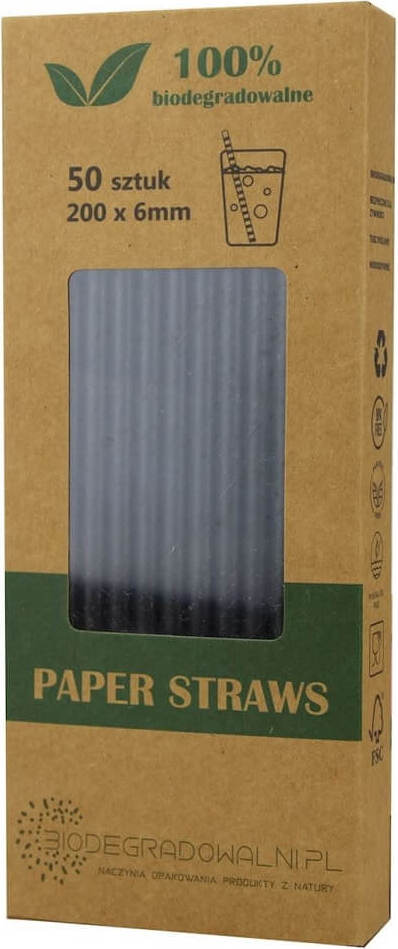 PAPER STRAWS BLACK 50 pcs - BIODEGRADOWALNI