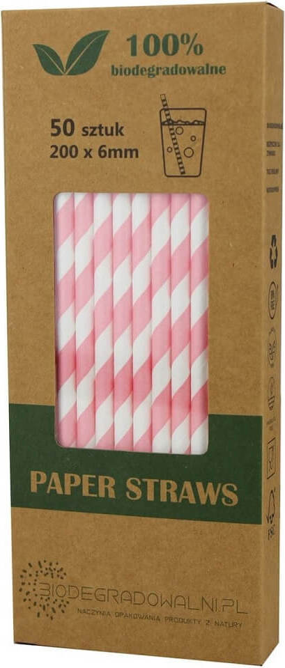 PAPER STRAWS PINK STRIPES 50 pcs - BIODEGRADOWALNI