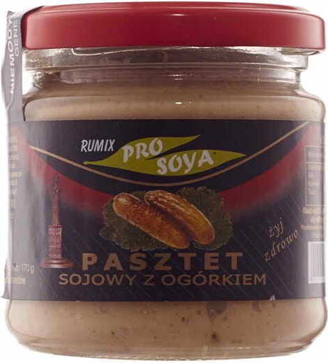 soybeans 65%, water, pickled cucumber 10%, rapeseed oil, onion, salt, spices (garlic, curry, ginger, coriander, bay leaf, allspice, nutmeg, chili). Non-genetically modified soybeans