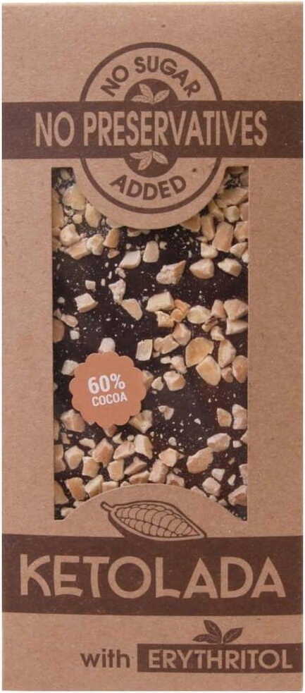 cocoa mass, sweetener: erythritol E 968, cocoa butter, almonds (13%)