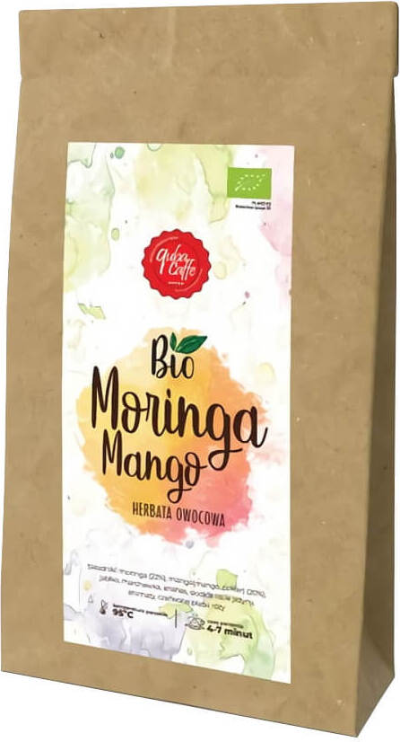 An organic blend of moringa with the addition of mango, the taste of which is the pure sweetness of exotic fruits. Moringa Mango comes only from organic gardens, which do not use chemicals, artificial fertilizers and pesticides, and the harvest is done manually. It does not contain caffeine, so it is ideal for pregnant women and children. Rich in vitamins, has a beneficial effect on the body's work. Brewing temperature: 95 ° C; tea brewing time: 4-7 min