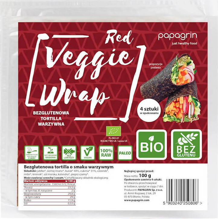 VEGETABLE TORTILLA WRAPS RED GLUTEN-FREE BIO 100 g - PAPAGRIN