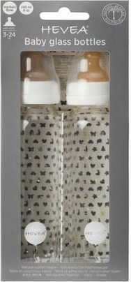 WHITE GLASS BOTTLE WITH RUBBER PACIFIER 3 - 24 months 240 ml (2 pcs) - HEVEA