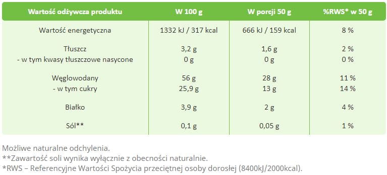 Valor energético: 1332 kJ / 317 kcal
