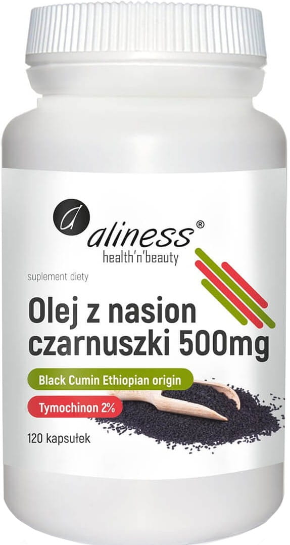 L'huile de graines de cumin noir d'Aliness est pressée à froid, une méthode lente (basse vitesse) qui préserve les composants volatils de l'huile et garantit la meilleure qualité d'huile pressée. Cette huile a une couleur différente et un goût plus fort que les autres types de cumin noir. Les graines utilisées pour le pressage proviennent d'Éthiopie, ce qui garantit une teneur beaucoup plus élevée en thymoquinone dans le produit par rapport aux autres variétés de graines, qui atteint jusqu'à 2%. Ces graines sont également caractérisées par une grande quantité d'acide oléique, linoléique et palmitique.
