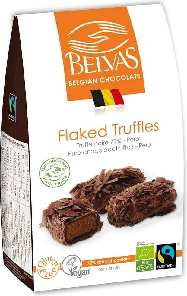 BELGISCHE CHOCOLADE TRUFFEL BITTER CHOCOLADE 72% GLUTEN- GRATIS FAIR TRADE BIO 100 g - BELVAS