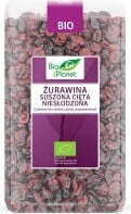 Gedroogde biologische cranberry zonder toegevoegde suiker, met tapiocavezels. Vezel is een belangrijk onderdeel van de dagelijkse voeding, het zwelt op in de darmen, waardoor het lange tijd vol voedingsstoffen zit, zorgt voor een langzamere opname van glucose in het bloed en voorkomt zo snelle sprongen in de suikerspiegels. Het ondersteunt de reiniging van de darmen, verbetert de spijsvertering en versnelt de peristaltiek. Helpt bij het verminderen van onaangename symptomen van constipatie, evenals pijn in de onderbuik en winderigheid