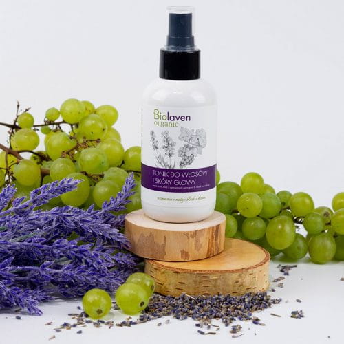 Biolaven biologisch haar- en hoofdhuidtonic is een natuurlijk product bereid uit de hoogste kwaliteit ingrediënten, op basis van biologische azijn van rode druiven. In de lengte aangebracht, maakt het het haar glad, sluit de nagelriemen, geeft het een zijdezachte en glanzende glans, terwijl het bij de wortels wordt aangebracht, werkt het als een zachte peeling en helpt het om het haar van de hoofdhuid te laten weerkaatsen. Azijn is de favoriete remedie van onze grootmoeders voor alle haarproblemen, bekend om zijn hydraterende en diep verzorgende eigenschappen, het kan jeukende en schilferige hoofdhuid kalmeren. Lavendelolie wordt niet alleen gekenmerkt door een frisse, aangename geur, het heeft ook verzorgende eigenschappen en creëert een film die verdamping van water voorkomt. Biolaven haar- en hoofdhuidtonic wordt aanbevolen als een versterkende behandeling en herstelt de glans van alle haartypes.