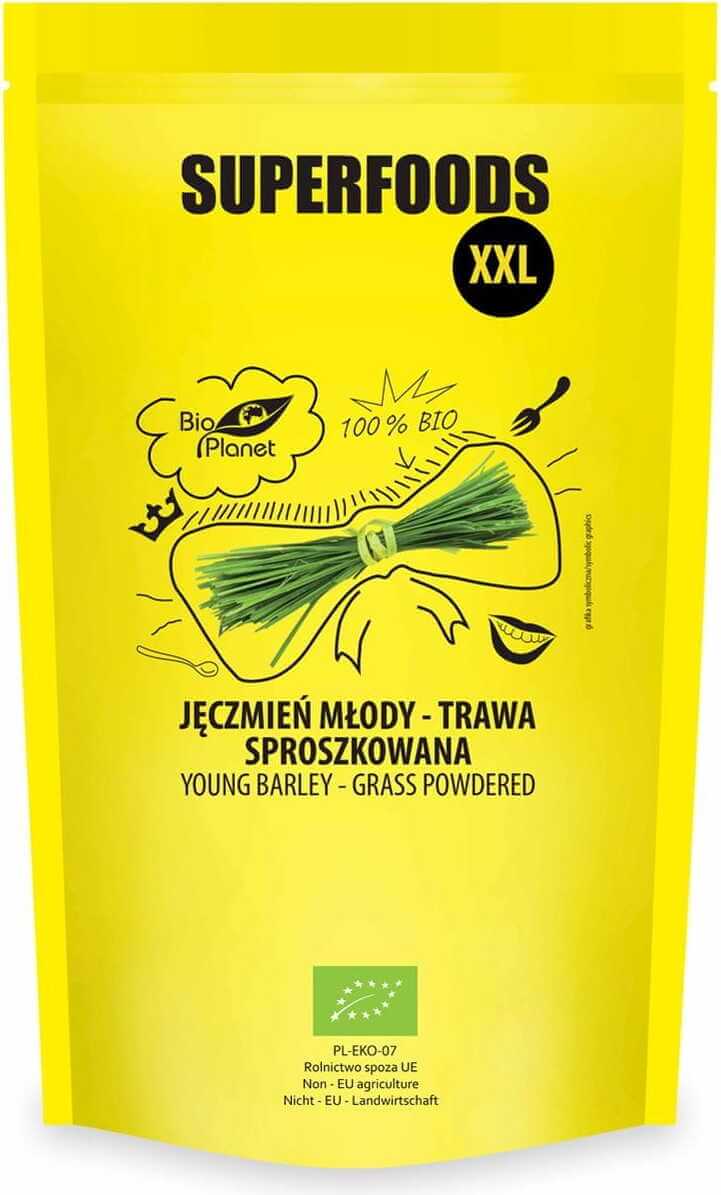 Algemeen erkend als superfood , een echte vitaminebom en minerale jonge gerst is niets anders dan onrijpe vrucht van een van de oudste granen ter wereld, namelijk gewone gerst ( Hordeum vulgare L .). Ecologisch gerstegras, verkrijgbaar in poedervorm, is onder andere een waardevolle bron B-vitamines, waaronder bijzonder waardevolle vitamines, onder andere voor zwangere vrouwen, foliumzuur, bètacaroteen, ijzer, magnesium, zink, calcium, mangaan, complete plantaardige eiwitten en vezels ter ondersteuning van het spijsverteringsstelsel, evenals vitamine C, E en K. Jonge gerst heeft antioxiderende eigenschappen - dat wil zeggen, neutraliserende effecten schadelijke vrije radicalen - en ondersteunen het immuunsysteem. Gerstpoeder is een uitstekende, uiterst voedzame toevoeging aan salades, cocktails en gebak.