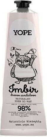 Een natuurlijke crème van Yope, bedoeld voor de dagelijkse verzorging van de huid van de handen. Dankzij de rijke formule met plantaardige actieve ingrediënten, hydrateert, voedt en beschermt het de droge en schrale huid effectief. Geschikt voor dames en heren. Geurversie: gember en sandelhout.
