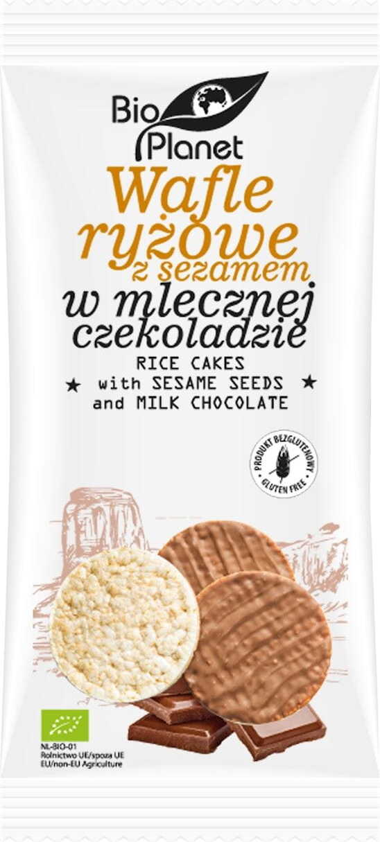 RIJSTWAFELTJES MET SESAM IN MELKCHOCOLADE BIO GLUTENVRIJ 100 g - BIO PLANET