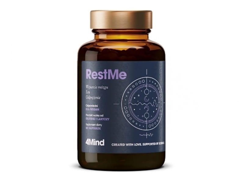 RestMe heeft een natuurlijke samenstelling inclusief plantenextracten die een positief effect hebben op de slaap . Door hun biologisch actieve vorm zijn de ingrediënten goed opneembaar. Het supplement helpt om te kalmeren en te regenereren tijdens de slaap. De samenstelling van het supplement omvat onder meer: Luiaardextract (Ashwagandha) is een adaptogeen dat bekend staat als rasayana, d.w.z. regeneratie en verjonging. Het beïnvloedt het emotionele evenwicht en verbetert het welzijn. Het helpt je in slaap te vallen, dus het is de moeite waard om het in te nemen bij problemen met slapeloosheid, na intensieve inspanning en in perioden van overmatige stress en verzwakte immuniteit. Passiebloemextract (Passiflora incarnata L.) ondersteunt ontspanning en rust. Ondersteunt de strijd tegen stress- en angstsymptomen. Magnesium vermindert vermoeidheid en het gevoel van vermoeidheid. Het ondersteunt een regelmatige hartslag en de goede werking van het immuunsysteem en het zenuwstelsel. Vitamine B6 (pyridoxine) ondersteunt de werking van het zenuwstelsel, het immuunsysteem en het cardiovasculaire systeem. Het draagt bij aan de vermindering van vermoeidheid en uitputting. Valeriaanwortelextract (Valeriana officinalis) helpt bij het reguleren van stress en slaap. Al in de oudheid werd het gebruikt als een product om te kalmeren en te helpen slapen. Hopextract (Humulus lupulus) ondersteunt het zenuwstelsel. Hop ondersteunt vele kwalen, waaronder: voor problemen met acne en spijsvertering. Het heeft echter een rustgevend effect en wordt aanbevolen voor mensen die problemen hebben met in slaap vallen. Melatonine ondersteunt de regulatie van de slaap. Melatonine komt van nature in het menselijk lichaam voor, maar wordt gebruikt om de slaap te helpen reguleren.