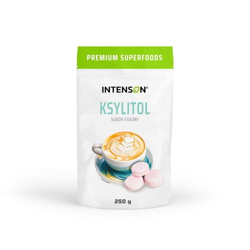 Xylitol - tafelzoetstof. Xylitol is een zoetstof van plantaardige oorsprong. Het komt van nature voor in frambozen, aardbeien, pruimen en zelfs bloemkool. Het heeft het uiterlijk en de zoetheid van gewone suiker, maar bevat 40% minder calorieën. Bovendien heeft het een zeer lage glycemische index IG = 8, waardoor het geen pieken in de bloedsuikerspiegel en insulinespiegels veroorzaakt. 1 gram is slechts 2,4 calorieën, dus het zal goed werken als suikervervanger voor mensen die producten met een hoge glycemische index in hun dieet moeten uitsluiten en niet willen afzien van zoetige koffie, thee of zoete snacks en gebak.