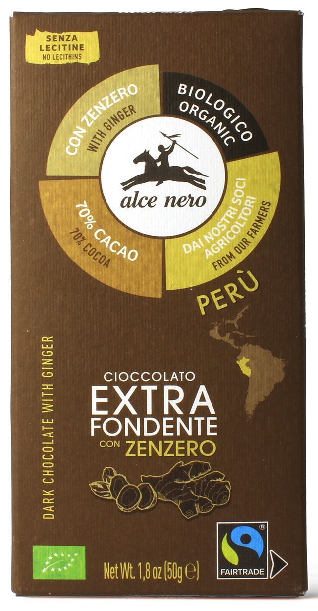 CZEKOLADA GORZKA Z IMBIREM FAIR TRADE BEZGLUTENOWA BIO 50 g - ALCE NERO