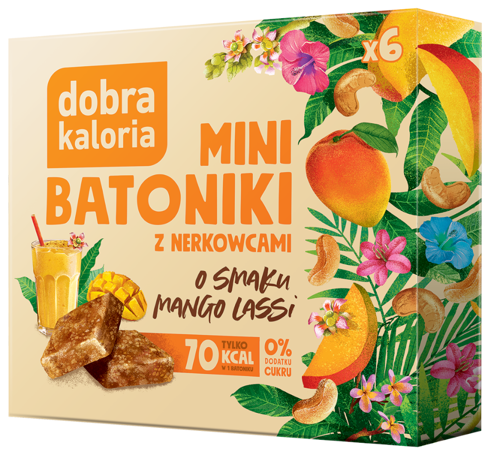 DOBRA KALORIA Mini batoniki o smaku mango lassi z nerkowców (6x17g) KUBARA
