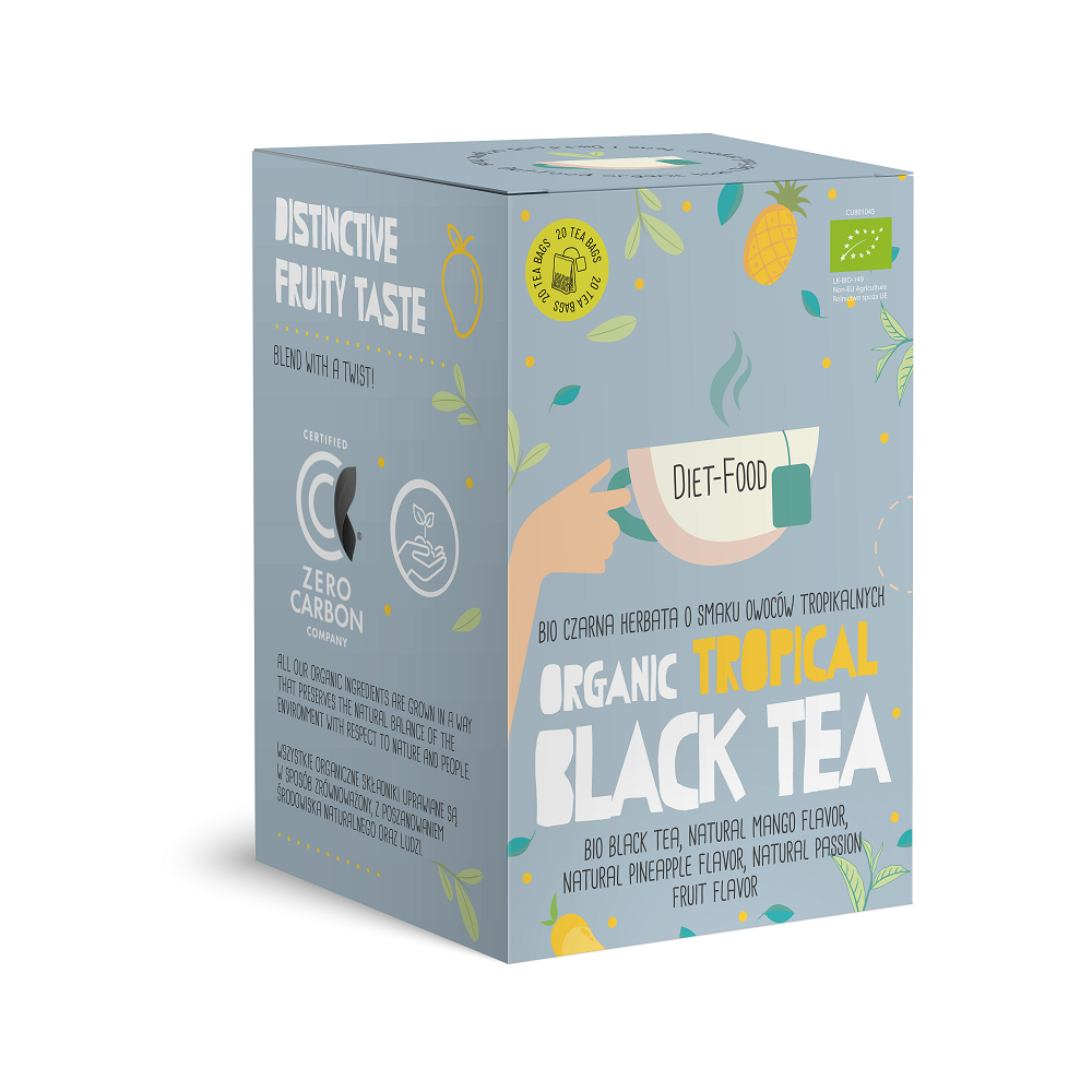 Bio Herbatka Black Tea Tropical to podróż przez tropikalne smaki i aromaty. Zawiera 96% czarnej herbaty i naturalne aromaty mango, ananasa, oraz marakui. Wszystkie te składniki posiadają certyfikat ekologiczny, co oznacza, że nie tylko możesz cieszyć się egzotycznymi smakami, ale także otrzymujesz produkt najwyżej jakości. Ta herbata to doskonały wybór dla tych, którzy marzą o rajskim wakacyjnym klimacie, bez opuszczania własnego domu."