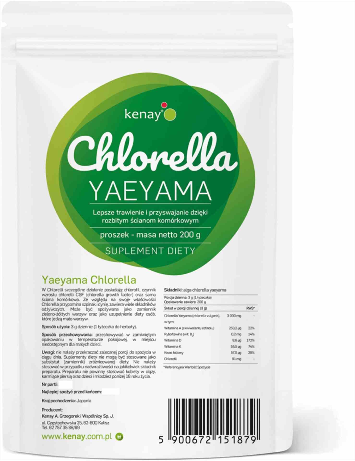 Kenay Chlorella Yaeyama 200 g to wysokiej jakości suplement diety zawierający chlorellę, jedną z najbardziej odżywczych roślin na świecie. Chlorella Yaeyama to szczególny gatunek chlorelli, uprawiany na wyspie Yaeyama w Japonii, gdzie korzysta z korzystnych warunków środowiskowych.