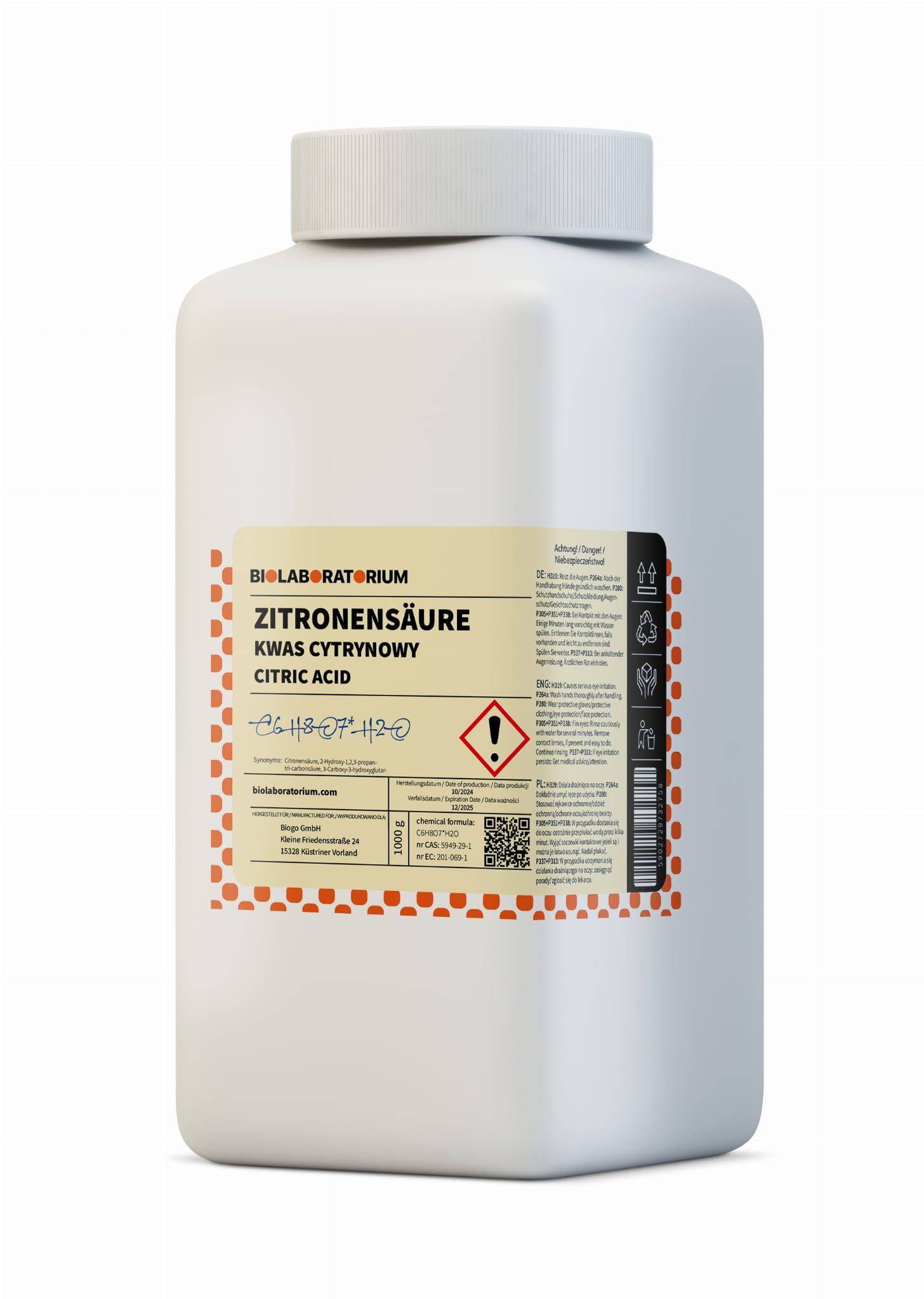 Kwas kwasek cytrynowy jednowodny 1kg Biolaboratorium