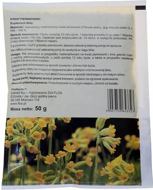 2 g produktu, czyli 2g kwiatu pierwiosnki, stanowi zalecaną dzienną porcję do spożycia.