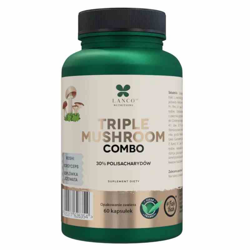 Lanco Nutritions Triple Mushroom Combo Lions Mane Reishi Kordyceps 60 kapsułek
