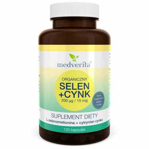 Suplement diety Medverita Selen + Cynk 120 kapsułek to produkt zawierający selen w postaci L-selenometioniny z drożdży, cynk w formie cytrynianu cynku oraz inulinę z korzenia cykorii w wygodnej formie kapsułki.