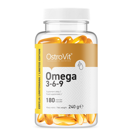 OstroVit Omega 3-6-9 to suplement diety w kapsułkach zawierający kwasy tłuszczowe omega 3 (EPA, DHA, ALA), Omega 6 (LA) i Omega 9 (OA), wzbogacone o witaminę E.Kwasy omega 3, omega 6 oraz omega 9 zaliczane są do niezbędnych nienasyconych kwasów tłuszczowych. Bardzo istotna jest odpowiednia proporcja wszystkich kwasów nienasyconych z tego względu, iż każdy z nich pełni odmienną rolę w organizmie.