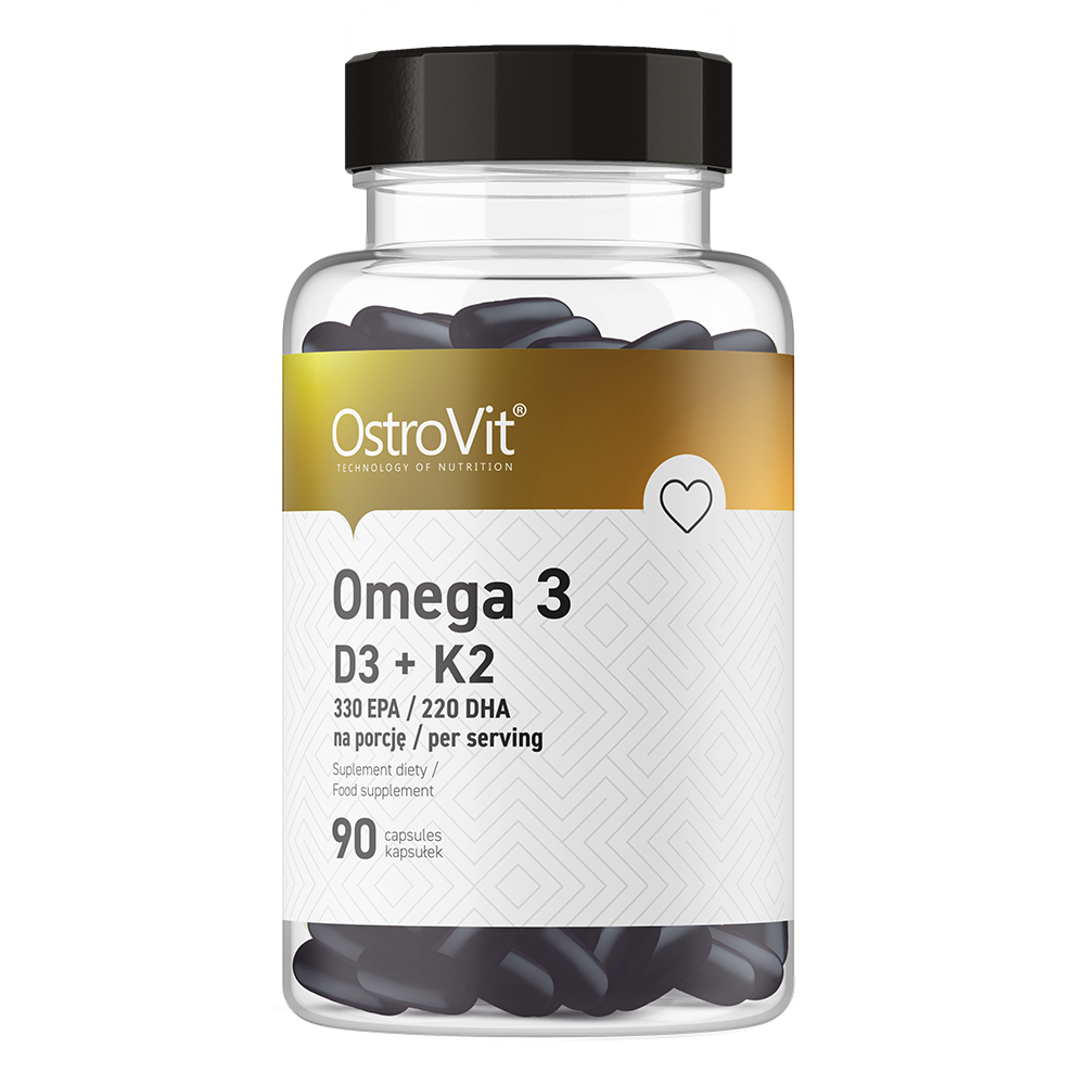 OstroVit Omega 3 D3+K2 to suplement diety w miękkich kapsułkach typu softgel, zawierający kwasy tłuszczowe omega 3 (EPA i DHA) oraz witaminy D3, K2, a takżeD-alfa-tokoferol czyli witaminę E. OstroVit Omega 3 D3+K2 jest szczególnie polecany osobom chcącym zadbać o poprawne fukncjonowanie układu sercowo-naczyniowego, układ krążenia, a także chcącym zadbać o poprawne funkcjonowanie kości.