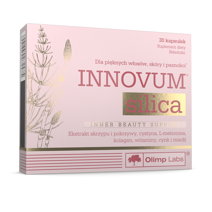 Suplement diety OLIMP LABS INNOVUM SILICA to wysokiej jakości produkt, który łączy w sobie naturalne wyciągi z pokrzywy i skrzypu oraz aminokwasy, witaminy i minerały. Produkt ten został stworzony dla tych, którzy mają problemy z włosami, paznokciami i skórą. Ma wygodną do stosowania postać tabletek i prosty skład.