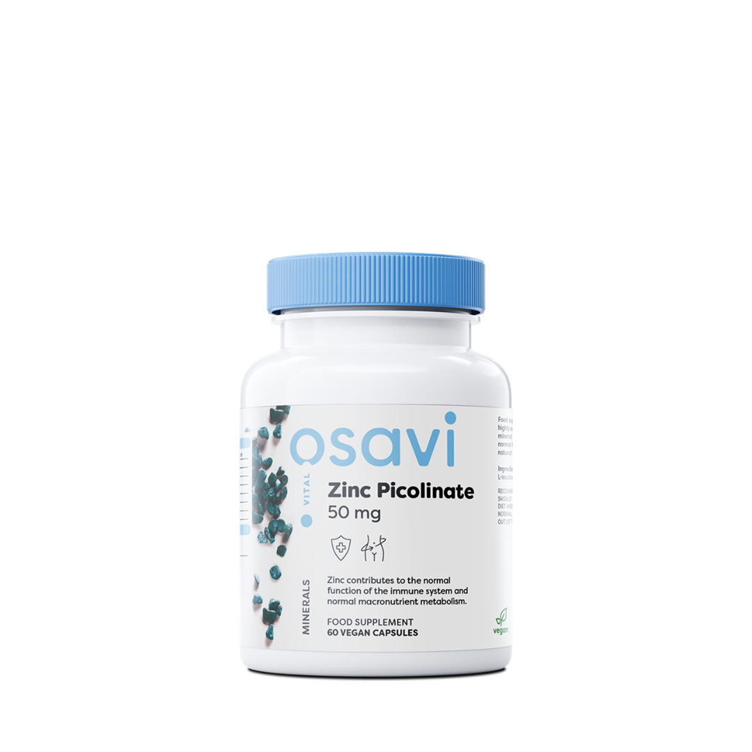 Suplement diety OSAVI Pikolinian cynku to wysokiej jakości produkt, który zawiera pikolinian cynku, stanowiący źródło wysoce przyswajalnego i łatwo wchłanialnego cynku. Mikroelement ten posiada wiele prozdrowotnych właściwości, dlatego ważne jest, by dbać o utrzymanie jego odpowiedniego poziomu we krwi. Zaletą suplementu od OSAVI jest postać wegańskich kapsułek oraz prosty, czysty skład, bez sztucznych dodatków, ulepszaczy i konserwantów.