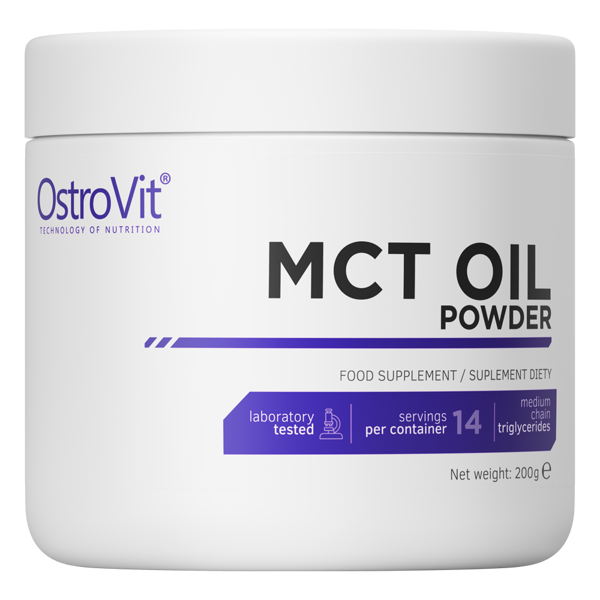 Suplement diety OstroVit Olej MCT to wysokiej jakości produkt, który stanowi źródło cennego oleju MCT. Olej ten zawiera wiele substancji aktywnych, między innymi kwasy: kapronowy, kaprylowy, kaprynowy, lauronowy, mirycystynowy i palmitynowy. Produkt od OstroVit ma prosty skład, pozbawiony zbędnych dodatków, konserwantów, ulepszaczy i barwników. Ma postać proszku.