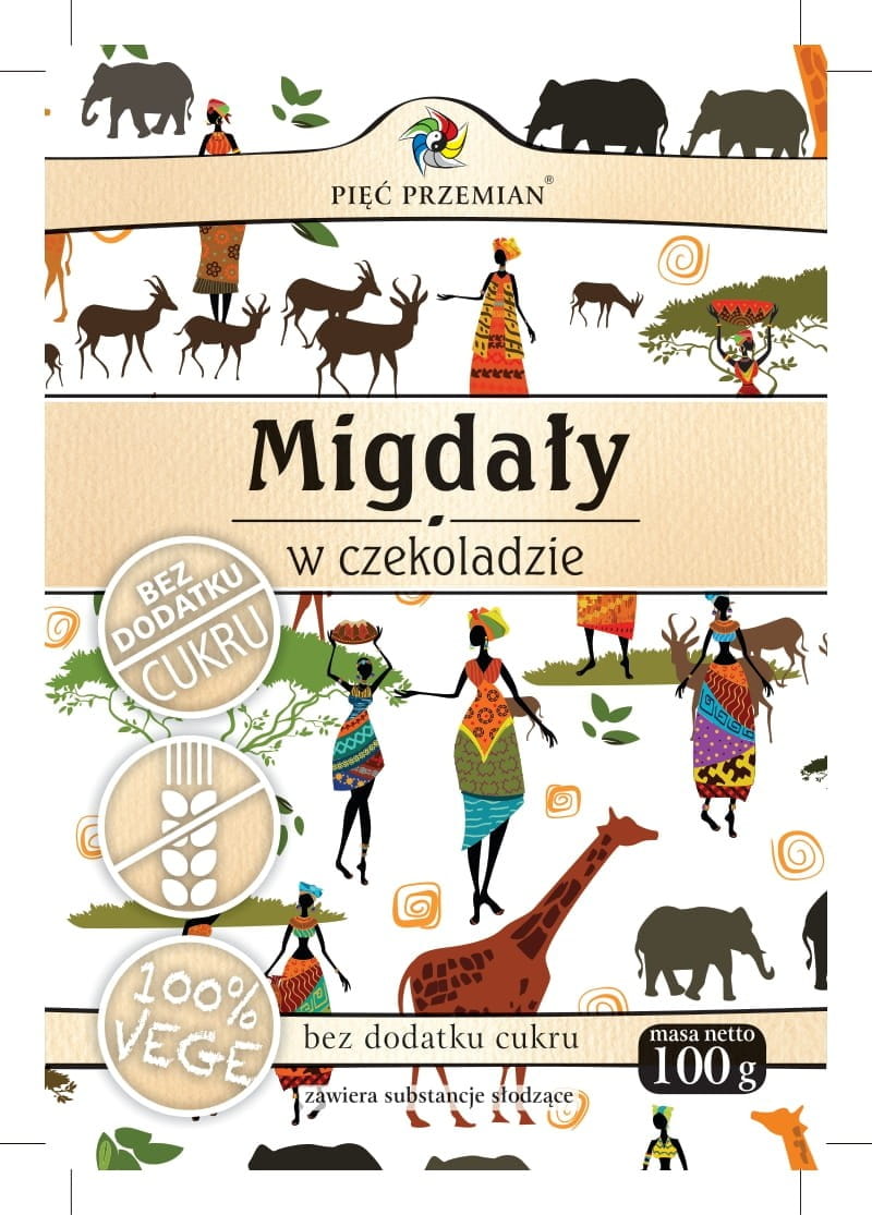 PIĘĆ PRZEMIAN Migdały w czekoladzie bez cukru bezglutenowe 100g