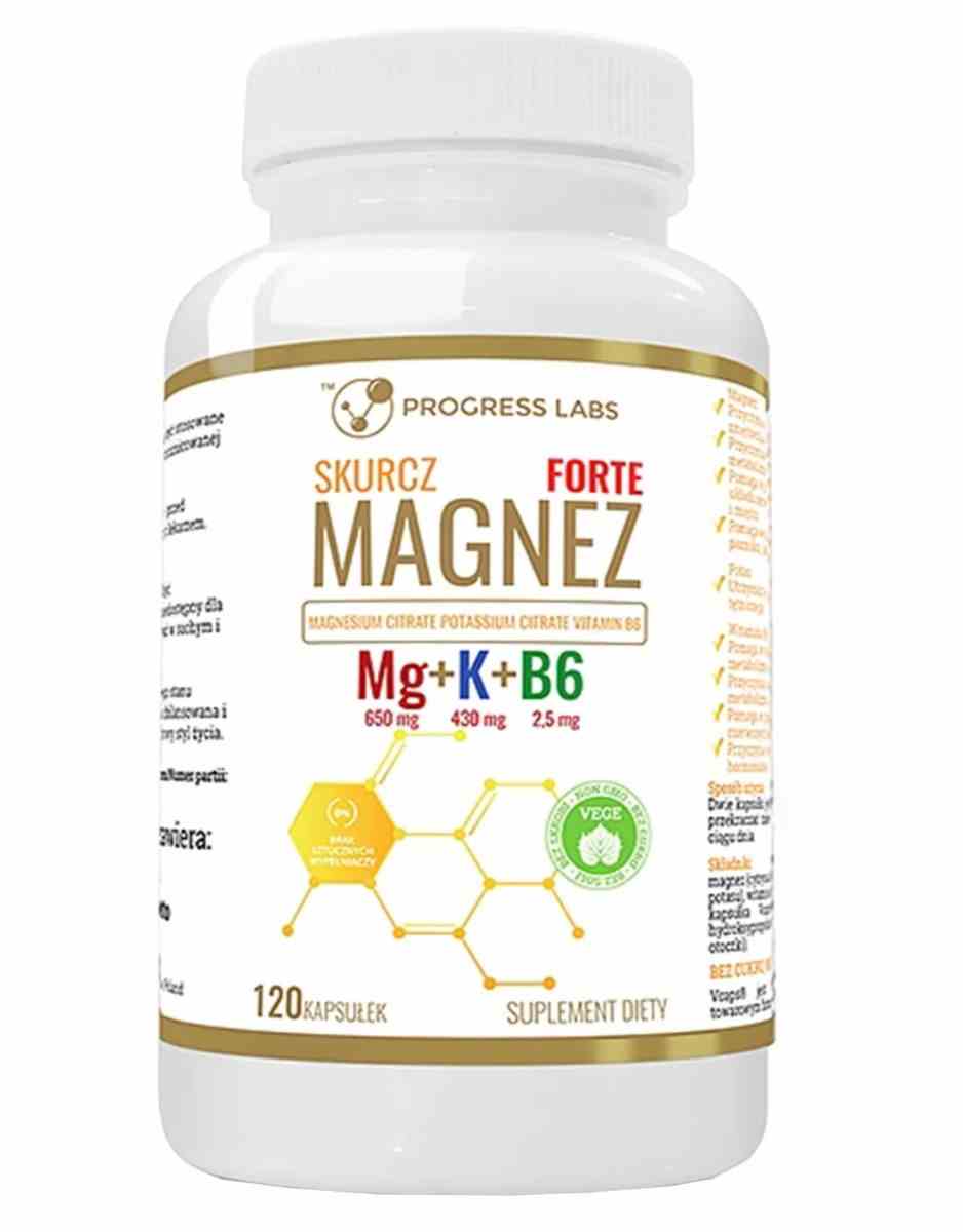 Progress Labs Mg+K+Vit B6 Forte 120 kapsułek to suplement diety, który łączy w sobie właściwości magnezu, potasu oraz witaminy B6 – substancji o bardzo wszechstronnym działaniu. Opakowanie zawiera aż 120 kapsułek, co zapewnia kompleksowe wsparcie na dłuższy czas.