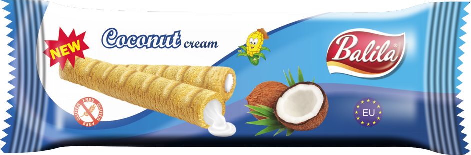 RURKI KUKURYDZIANE Z KREMEM O SMAKU KOKOSOWYM BEZGLUTENOWE 18 g - BALILA