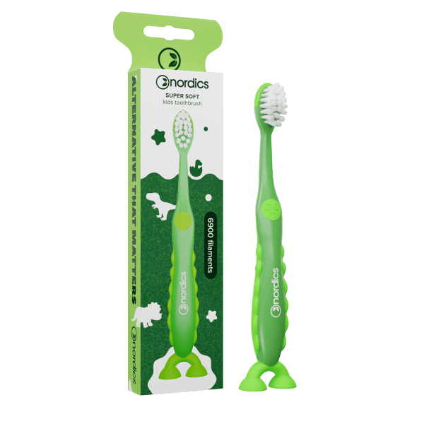 SZCZOTECZKA DO ZĘBÓW DLA DZIECI 6900 SUPER MIĘKKA ZIELONA DINOZAUR - NORDICS