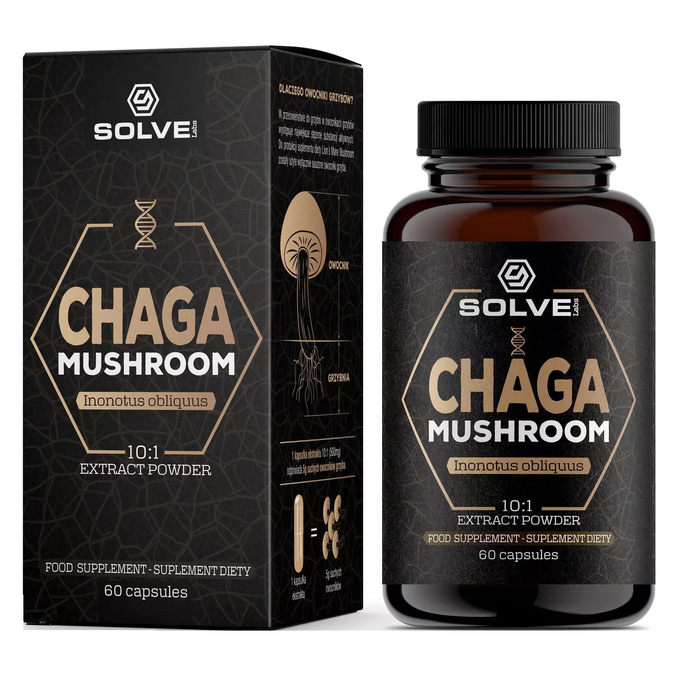 SolveLabs Chaga (Błyskoporek podkorowy) 10:1 Ekstrakt 60 kapsułek