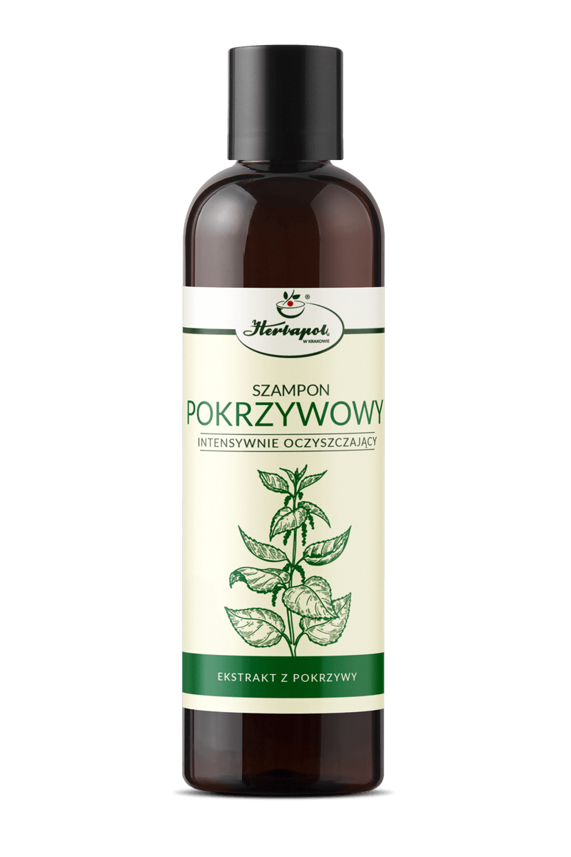 Szampon pokrzywowy przeznaczony do codziennego mycia włosów, zwłaszcza ze skłonnością do przetłuszczania się. Zawiera w swoim składzie wyciąg z pokrzywy, który utrzymuje skórę głowy i włosy w dobrej kondycji. Działa również przeciwłupieżowo. Szampon skutecznie oczyszcza skórę głowy i włosy. Regularne stosowanie sprawia, że włosy stają się miękkie i puszyste.