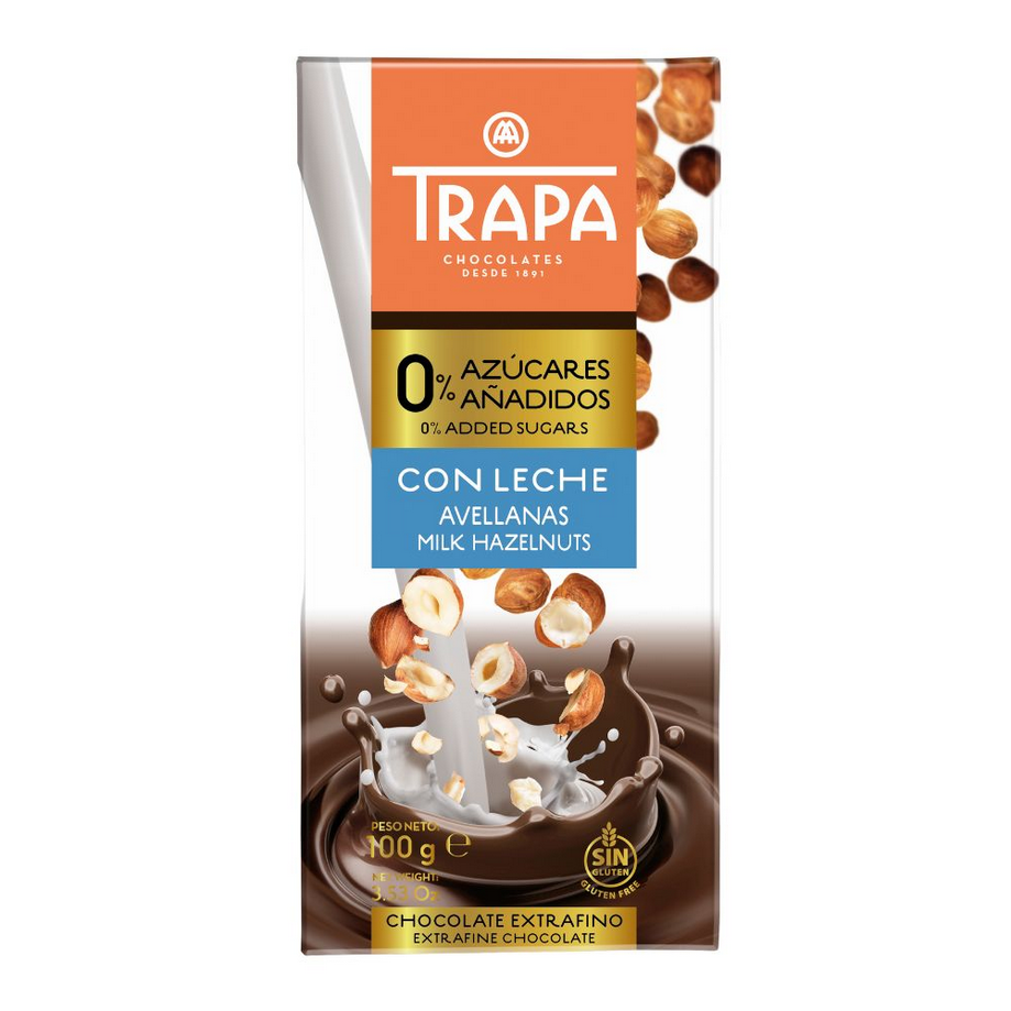 TRAPA Czekolada mleczna z orzechami laskowymi bez dodatku cukru bezglutenowa 100g
