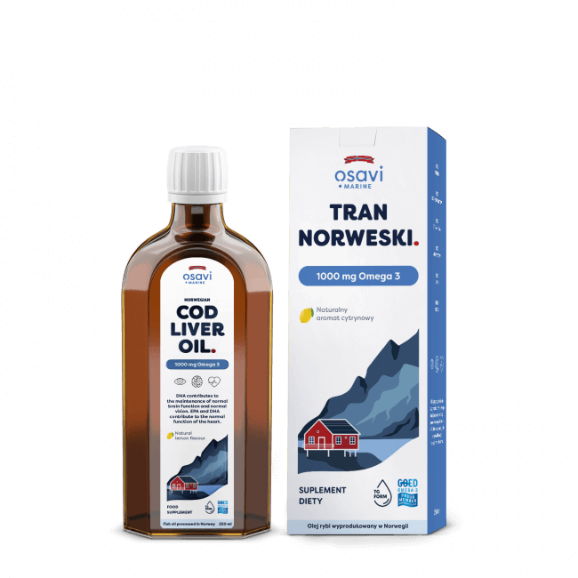 Tran Norweski 1000 mg Omega 3 - smak cytrynowy (250 ml)