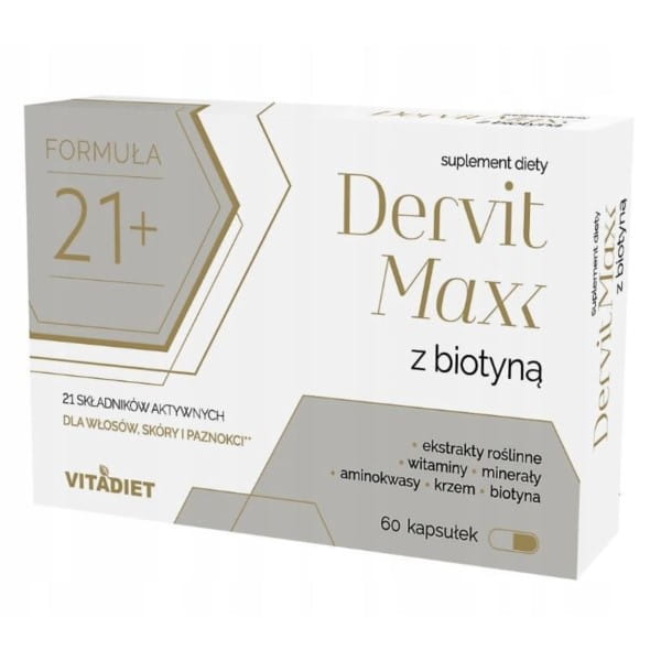 Dervit Max z biotyną 60 kapsułek suplement diety został opracowany z