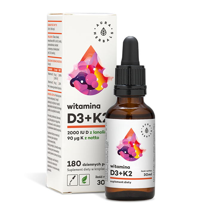 Ilość netto: 30ml - 900 kropli po 400 IU witaminy D3 (360 000 IU D3) i 18μg K2 (16 200 ug K2).