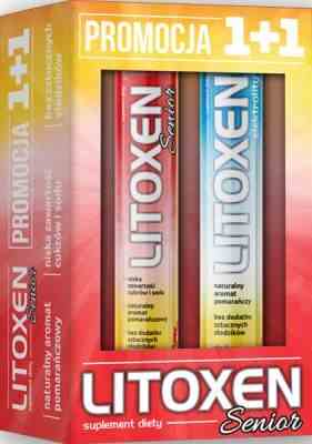 Suplement diety LITOXEN SENIOR Zestaw Litoxen Senior + Litoxen Elektrolity to wyjątkowy produkt, który został skierowany dla osób starszych. Jego celem jest uzupełnienie diety seniorów w niezbędne elektrolity, glukozę i witaminę C. Dostarcza między innymi magnezu, potasu, sodu. Jest całkowicie bezpieczny oraz przyjmuje wygodną do stosowania postać musujących tabletek.