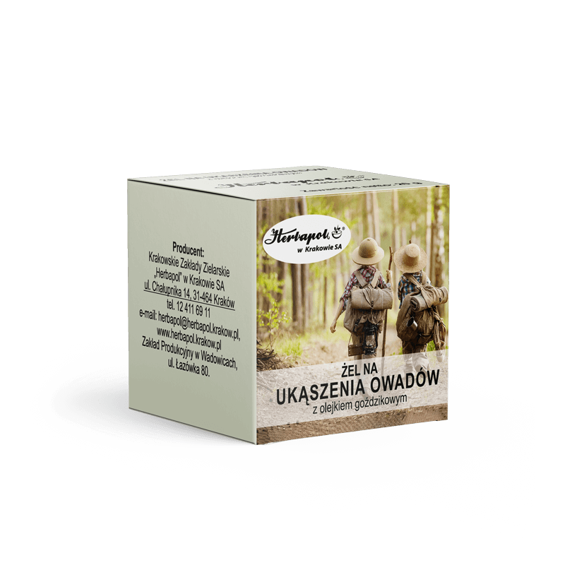 Żel z dodatkiem olejku goździkowego przeznaczony jest do miejscowego stosowania na skórę po ukąszeniu przez owady. Łagodzi swędzenie i zaczerwienienie skóry. Dzięki zawartości ekstraktu z aloesu przynosi szybką ulgę, działa nawilżająco, przyspiesza regenerację naskórka. Nie brudzi ubrań.