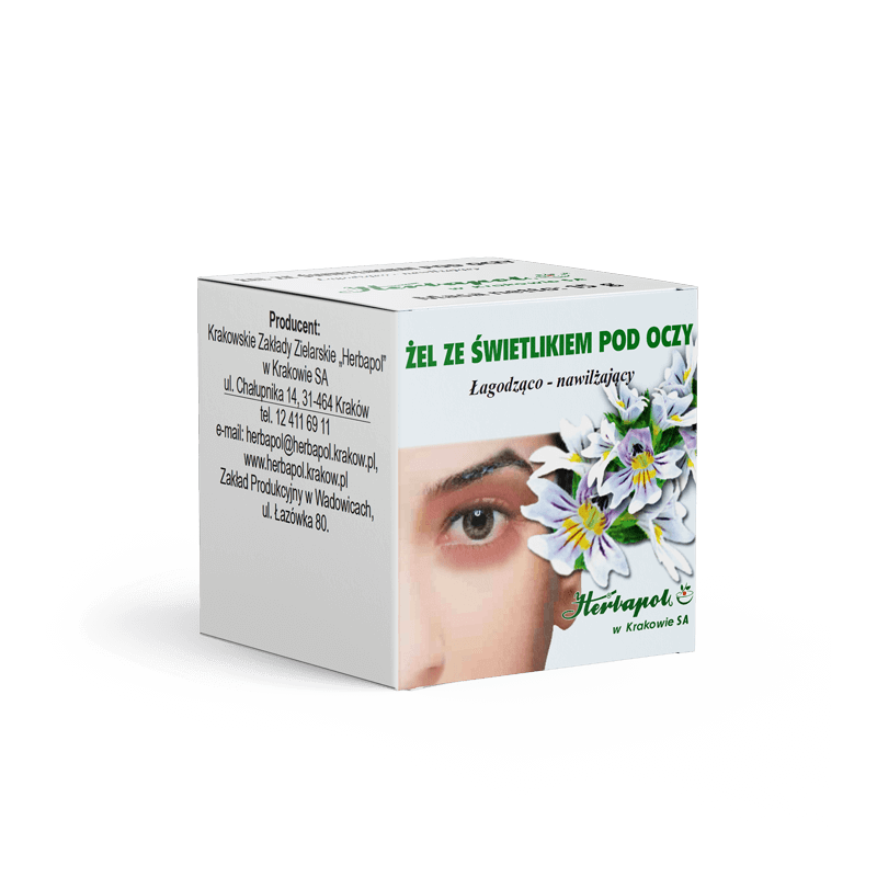 Żel stosować do pielęgnacji okolic oczu. Zawiera wyciąg ze świetlika lekarskiego, który działa ściągająco, kojąco i łagodząco, zmniejsza łzawienie oczu. Żel nawilża i uelastycznia skórę w okolicach oczu. Przynosi ulgę zmęczonym i opuchniętym oczom, usuwa uczucie „ciężkich powiek”, pozostawia na skórze uczucie lekkości i świeżości.
