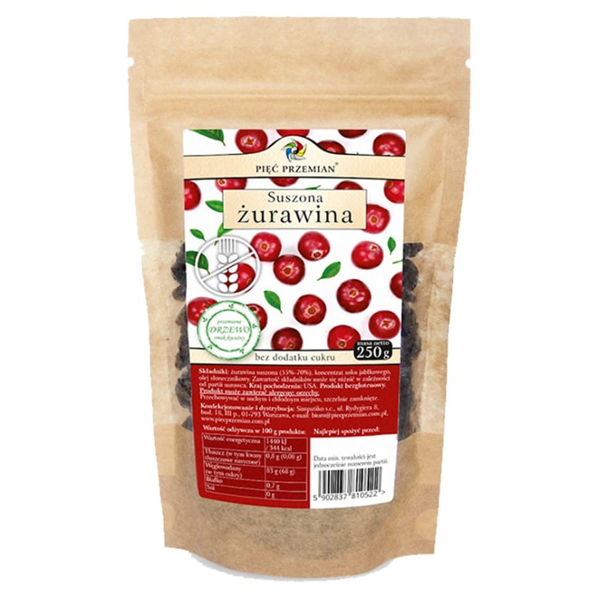 Żurawina suszona, słodzona sokiem jabłkowym Pięć Przemian, 250g